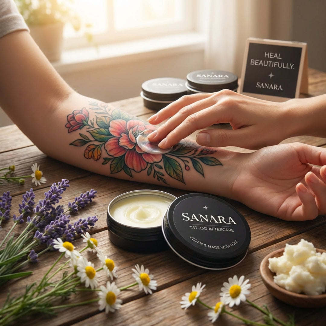 Sanara deeply moisturizes and protects healed tattoos, helping colors stay vibrant and skin look smooth. Results are visible from the first use, with no ink discoloration.